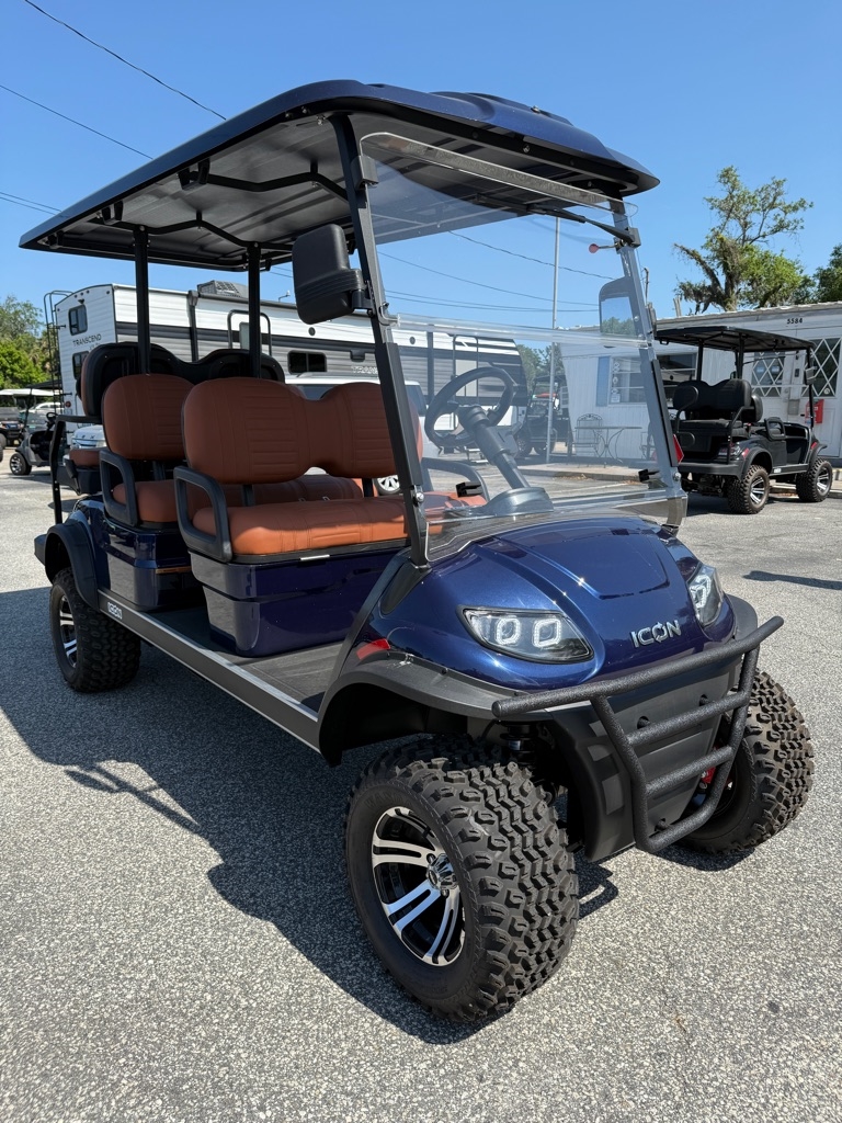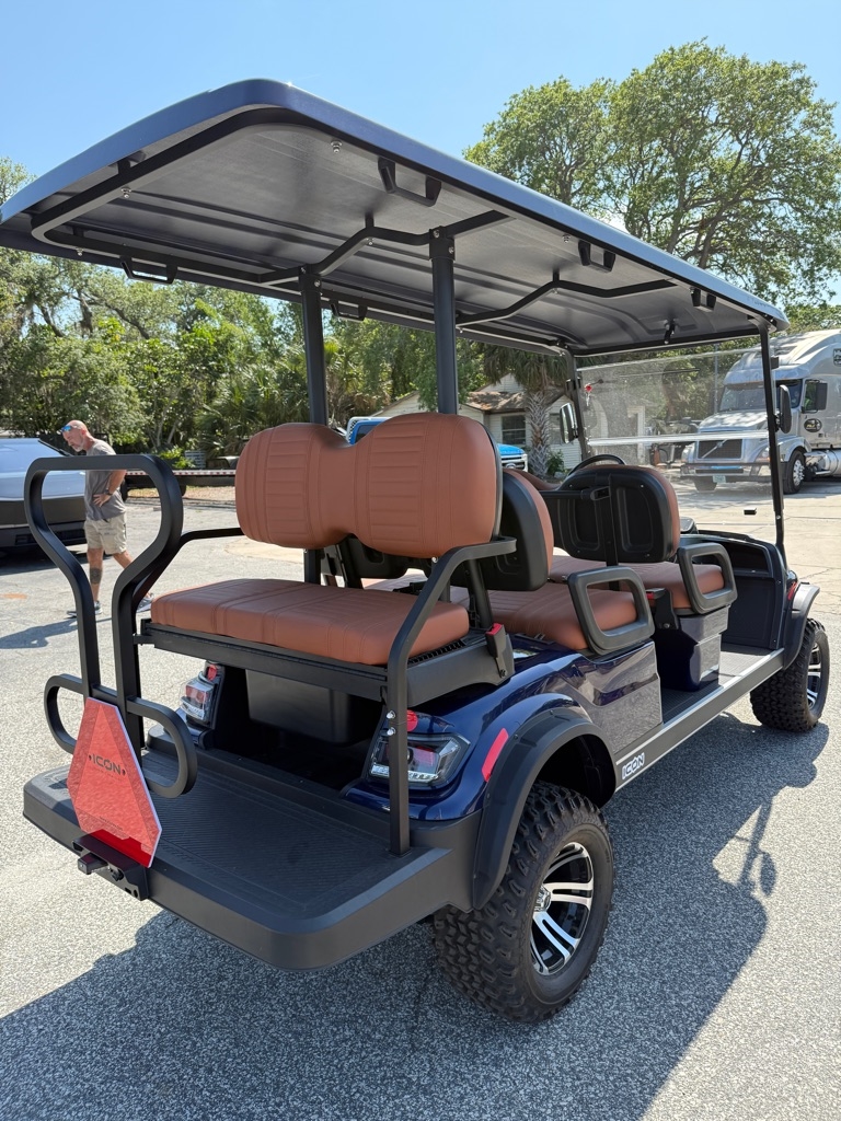 For Sale: 2025 ICON Six Passenger Gas Golf Cart - Brand New Now available at Blum's Auto Mart, 5584 S. Nova Rd, Port Orange, FL 32127. Call or text 386-481-4545 for details. This 2025 ICON six passenger gas-powered golf cart is built for style, performance, and reliability. Perfect for families, communities, resorts, or businesses, it is street legal on any roads 25 MPH or less and comes with a full manufacturer's warranty for complete peace of mind. Key Features: Powerful Gas Engine - Reliable performance with extended range, no need to worry about charging. Street Legal Package - Headlights, brake lights, turn signals, horn, windshield, mirrors, and seatbelts included. Six Passenger Seating - Spacious, comfortable seating with high-quality marine-grade upholstery. Alloy Wheels & Premium Tires - Durable and stylish for smooth rides on and off the road. Digital Display - Modern dashboard with speedometer, fuel gauge, and diagnostics. Independent Suspension & Hydraulic Brakes - Ensures a safe, stable, and comfortable ride. Fold-Down Rear Seat & Cargo Capability - Extra space for gear, groceries, or luggage. Sun Canopy Roof - Protection from the elements while you cruise. Heavy-Duty Frame Construction - Built to last with exceptional safety and durability. Multiple Color Options - Choose a cart that fits your personal style. This brand new ICON gas golf cart is the perfect mix of luxury, performance, and practicality.