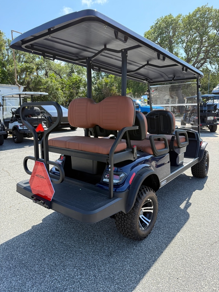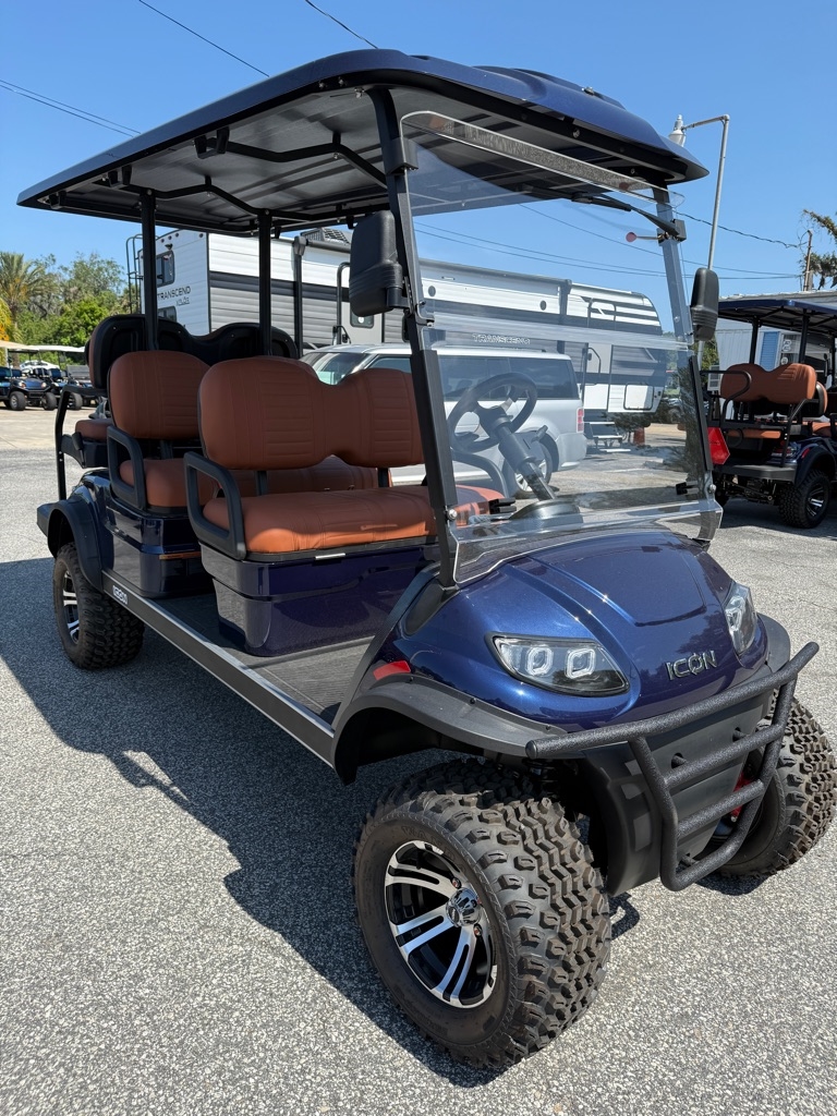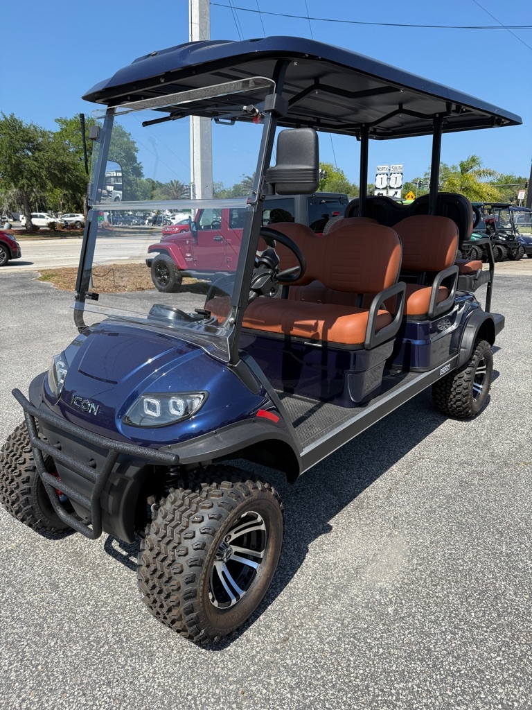 For Sale: 2025 ICON Six Passenger Gas Golf Cart - Brand New Now available at Blum's Auto Mart, 5584 S. Nova Rd, Port Orange, FL 32127. Call or text 386-481-4545 for details. This 2025 ICON six passenger gas-powered golf cart is built for style, performance, and reliability. Perfect for families, communities, resorts, or businesses, it is street legal on any roads 25 MPH or less and comes with a full manufacturer's warranty for complete peace of mind. Key Features: Powerful Gas Engine - Reliable performance with extended range, no need to worry about charging. Street Legal Package - Headlights, brake lights, turn signals, horn, windshield, mirrors, and seatbelts included. Six Passenger Seating - Spacious, comfortable seating with high-quality marine-grade upholstery. Alloy Wheels & Premium Tires - Durable and stylish for smooth rides on and off the road. Digital Display - Modern dashboard with speedometer, fuel gauge, and diagnostics. Independent Suspension & Hydraulic Brakes - Ensures a safe, stable, and comfortable ride. Fold-Down Rear Seat & Cargo Capability - Extra space for gear, groceries, or luggage. Sun Canopy Roof - Protection from the elements while you cruise. Heavy-Duty Frame Construction - Built to last with exceptional safety and durability. Multiple Color Options - Choose a cart that fits your personal style. This brand new ICON gas golf cart is the perfect mix of luxury, performance, and practicality.