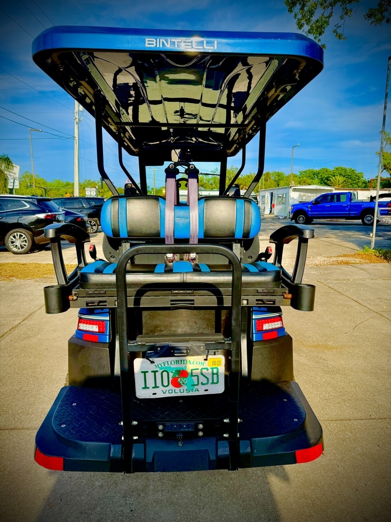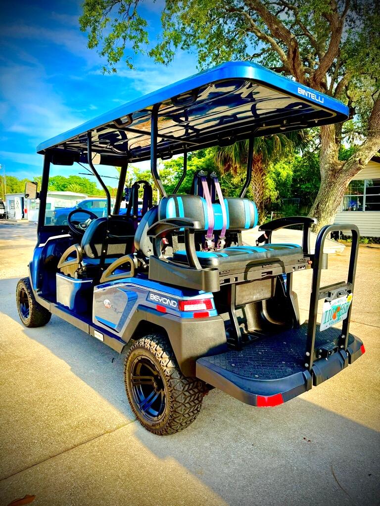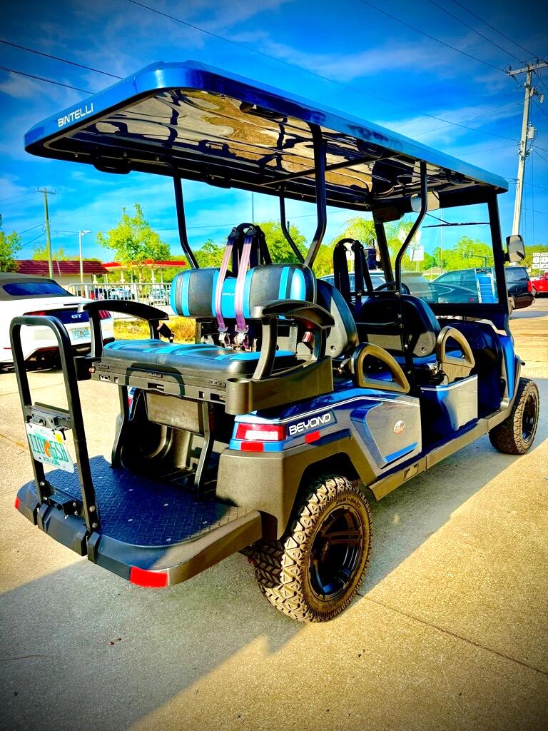 2023 BINTELLI BEYOND - STREET LEGAL, FULLY LOADED, & READY TO ROLL! Get ready to turn heads and cruise in style with this 2023 6-Passenger Lifted Bintelli Beyond Golf Cart - the ultimate street-legal machine packed with ALL the bells & whistles you could dream of! Street Legal with Title - Cruise the streets worry-free! Speedometer & Odometer - Know your speed and track your adventures. 12V Charging & USB Port - Stay powered up on the go! Locking Glovebox - Keep your valuables secure. Power Windshield Wiper - Conquer any weather with ease. Backup Camera - Safety first, every time you reverse. Premium Seating - Ride in comfort and style. Real Flip Seat with Built-in Storage & Cooler - Pack your gear or chill your drinks! No Dealer Fees. No Paperwork Fees. No Delivery Fees in Volusia County. NO NONSENSE. At Blum's Auto Mart, we've been serving our customers since 2015 with honesty, transparency, and a no-pressure experience. We TThis Bintelli BeThis Bintelli Beyond Lifted 6PR street legal golf cart is the newest addition to the Bintelli fleet and it is FULLY loaded! Complete with an aluminum frame, aluminum roof supports, AC motor, LED lighting, 22'' tires, a Bluetooth sound system, reverse camera, hydraulic disc brakes, two-tone premium seats, on-board smart charger, dual USB plugs, extended roof, rear flip seat, head lights, tail lights, turn signals, DOT windshield with wiper, DOT tires, DOT 3-point seat belts, and a 17 digit vin number.