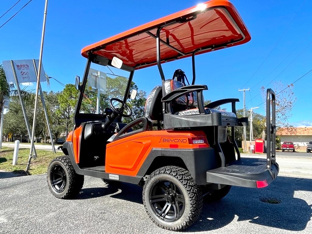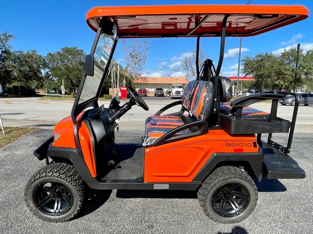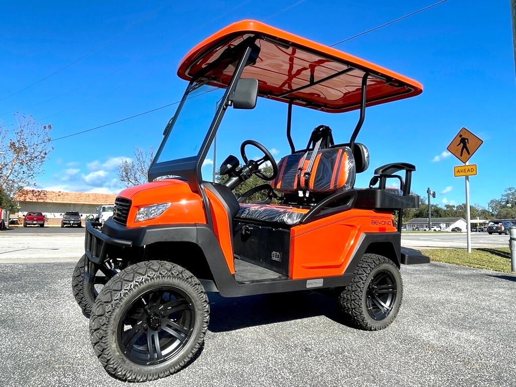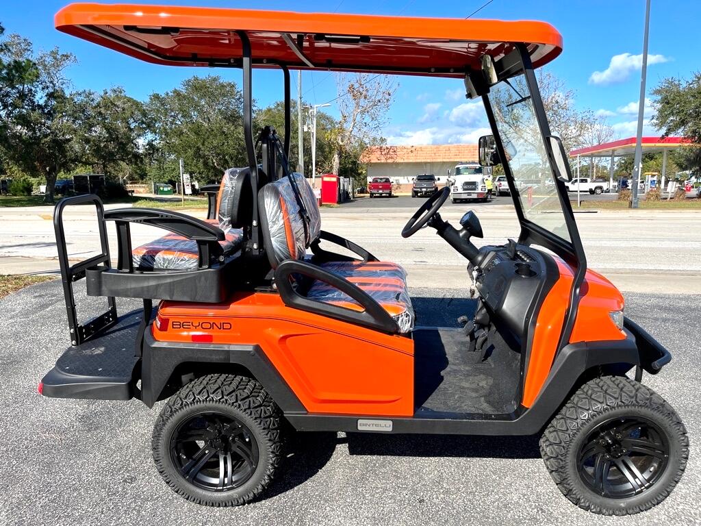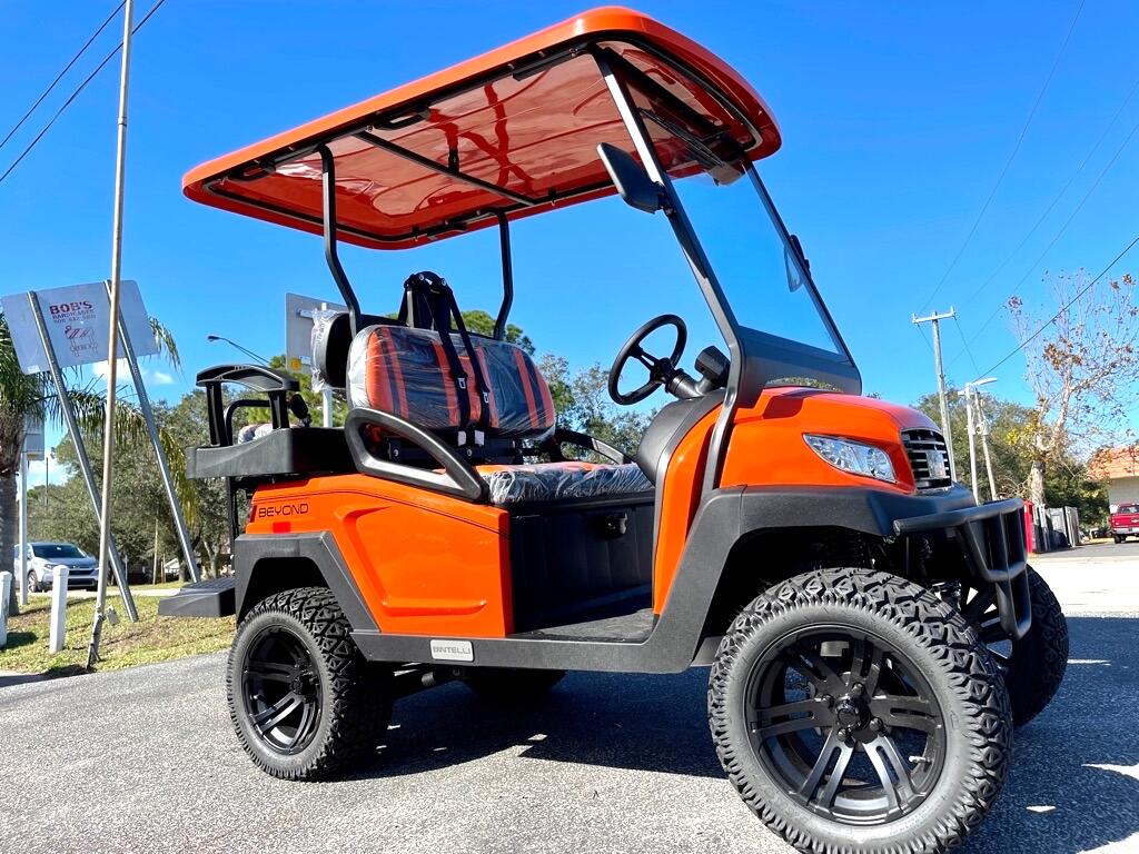 2023 BINTELLI BEYOND - STREET LEGAL, FULLY LOADED, & READY TO ROLL! Get ready to turn heads and cruise in style with this 2023 4-Passenger Lifted Bintelli Beyond Golf Cart - the ultimate street-legal machine packed with ALL the bells & whistles you could dream of! Street Legal with Title - Cruise the streets worry-free! Speedometer & Odometer - Know your speed and track your adventures. 12V Charging & USB Port - Stay powered up on the go! Locking Glovebox - Keep your valuables secure. Power Windshield Wiper - Conquer any weather with ease. Backup Camera - Safety first, every time you reverse. Premium Seating - Ride in comfort and style. Real Flip Seat with Built-in Storage & Cooler - Pack your gear or chill your drinks! No Dealer Fees. No Paperwork Fees. No Delivery Fees in Volusia County. NO NONSENSE. At Blum's Auto Mart, we've been serving our customers since 2015 with honesty, transparency, and a no-pressure experience.This Bintelli Beyond Lifted 4PR street legal golf cart is the newest addition to the Bintelli fleet and it is FULLY loaded! Complete with an aluminum frame, aluminum roof supports, AC motor, LED lighting, 23'' tires, a Bluetooth sound system, reverse camera, hydraulic disc brakes, two-tone premium seats, on-board smart charger, dual USB plugs, extended roof, rear flip seat, head lights, tail lights, turn signals, DOT windshield with wiper, DOT tires, DOT 3-point seat belts, and a 17 digit vin number.